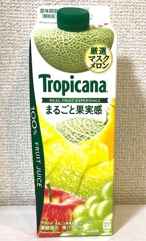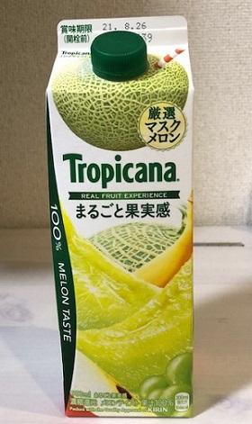 これは去年の夏、私がパッケージ詐欺だと騒いでいたトロピカーナ「100%まるごと果実感」のメロンテイストです。
