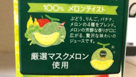 私が何を怒っていたかというと、メロン果汁入りのミックスジュースなのに「100%メロンテイスト」などという謎なネーミングで、まるでメロンジュースそのものであるかのように振舞っていたことです。